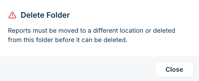 Note: Folders containing reports cannot be deleted. The following prompt is displayed when you try to delete folders containing reports.